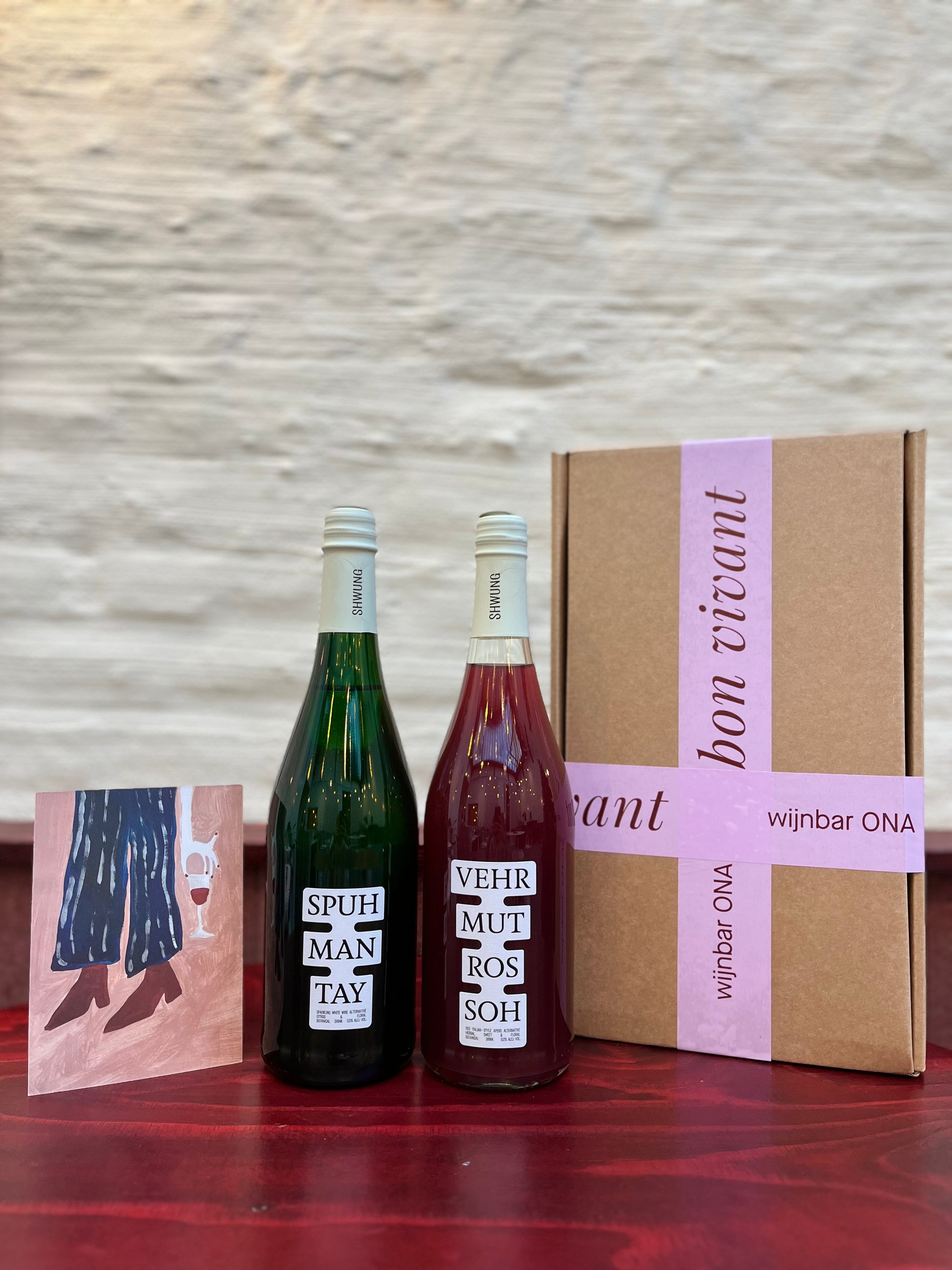 Een non-alcoholische box om onder andere de BOB’s in de watten te leggen, gemaakt door de Gentse Start-Up Schwung. Ontdek de Spuhmanteh, fris en floraal met elegante bubbels en een zuurtje dat mooi aanhoudt. Proef vervolgens de Vehrmut Rosso, de combinatie van tijm, hibiscus en alsem zorgt voor mediterrane zwoelheid in een glas.